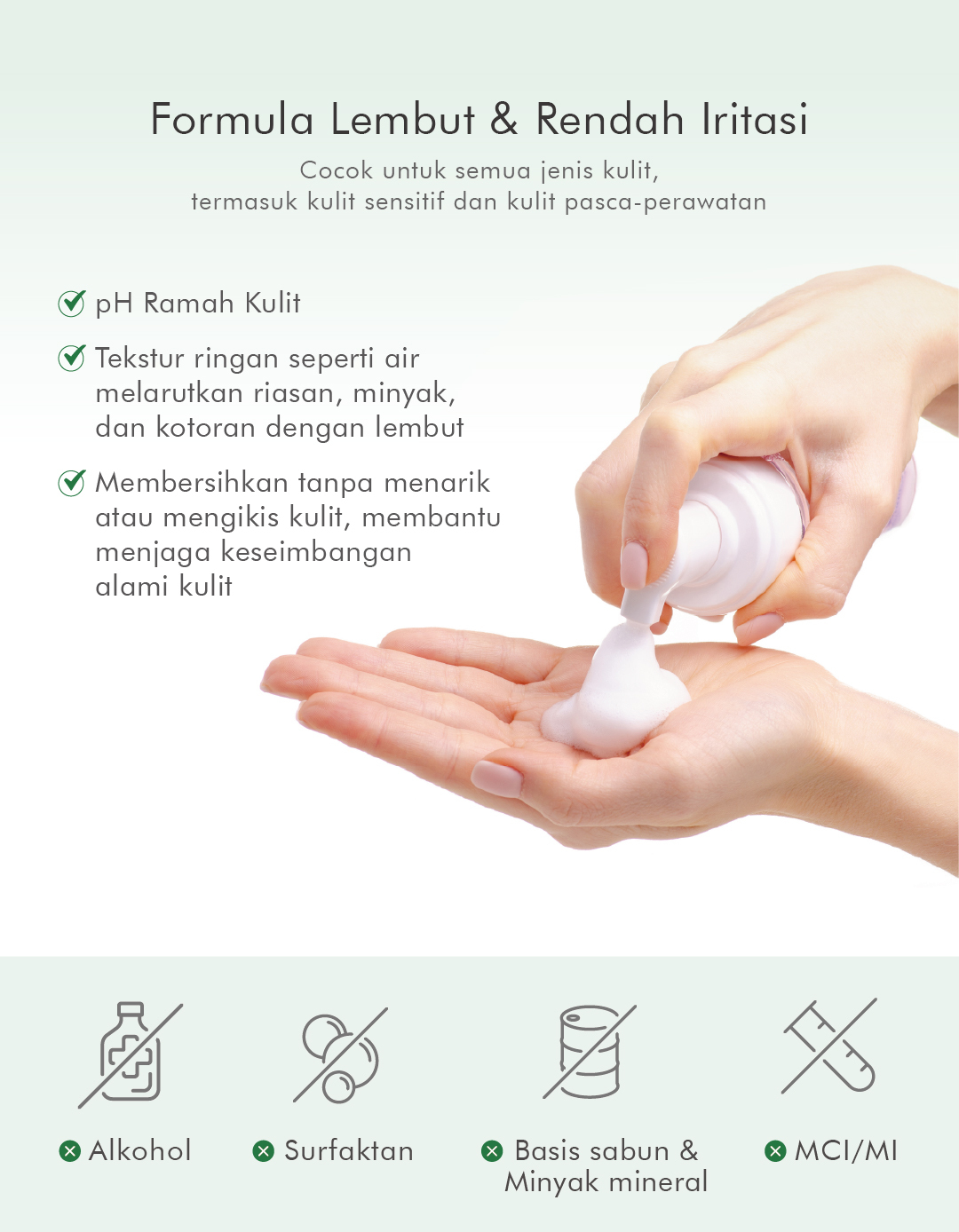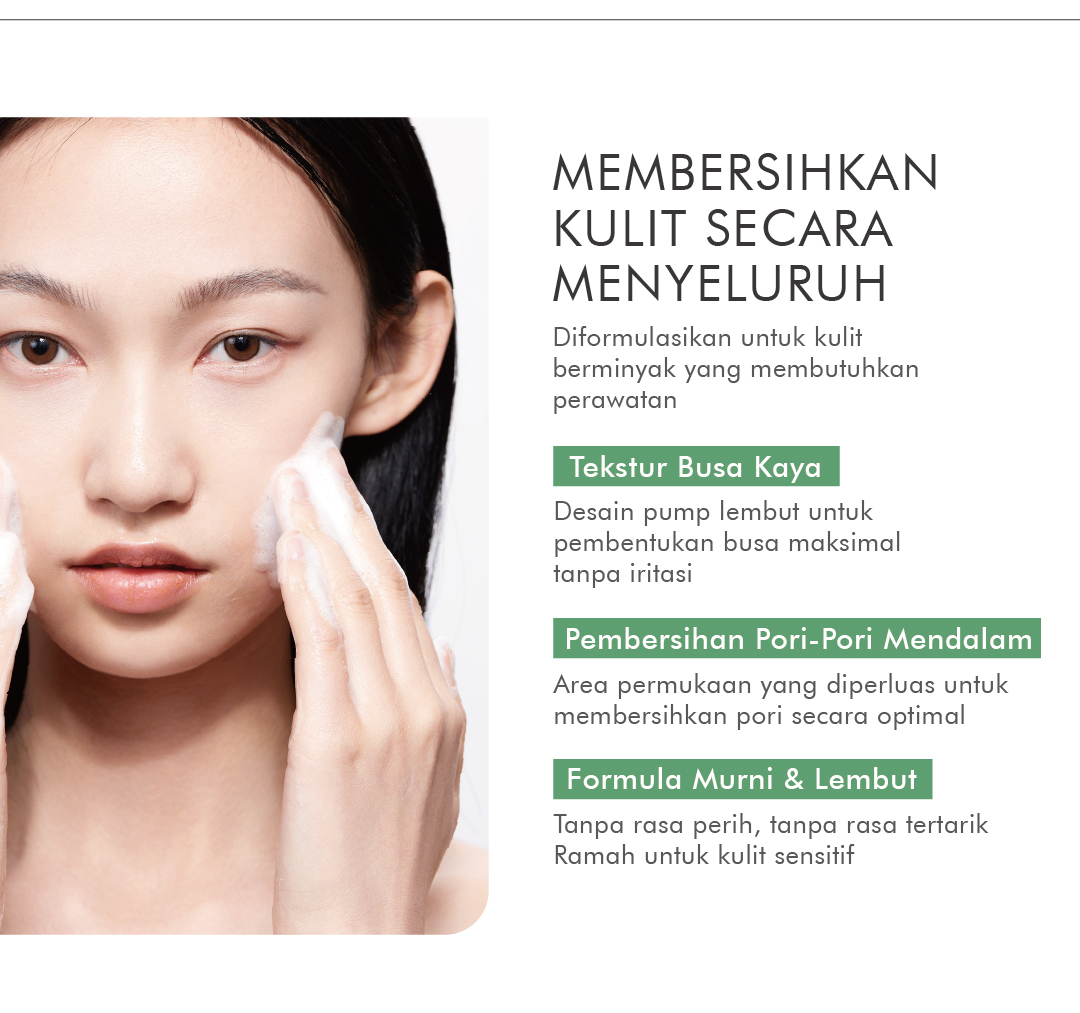 Pembersih wajah dengan tekstur busa yang lembut, dilengkapi dengan formulasi ekstrak tumbuhan. Membantu membersihkan kotoran dari pori-pori yang tersumbat serta mengontrol produksi sebum berlebih.