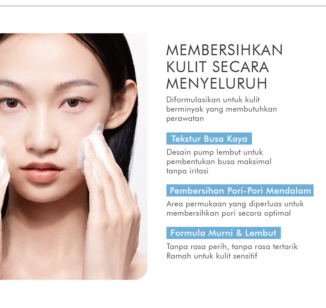 Pembersih wajah dengan tekstur busa yang lembut, secara efektif membersihkan debu dan kotoran tanpa merusak skin barrier atau menyebabkan kulit terasa kencang.
