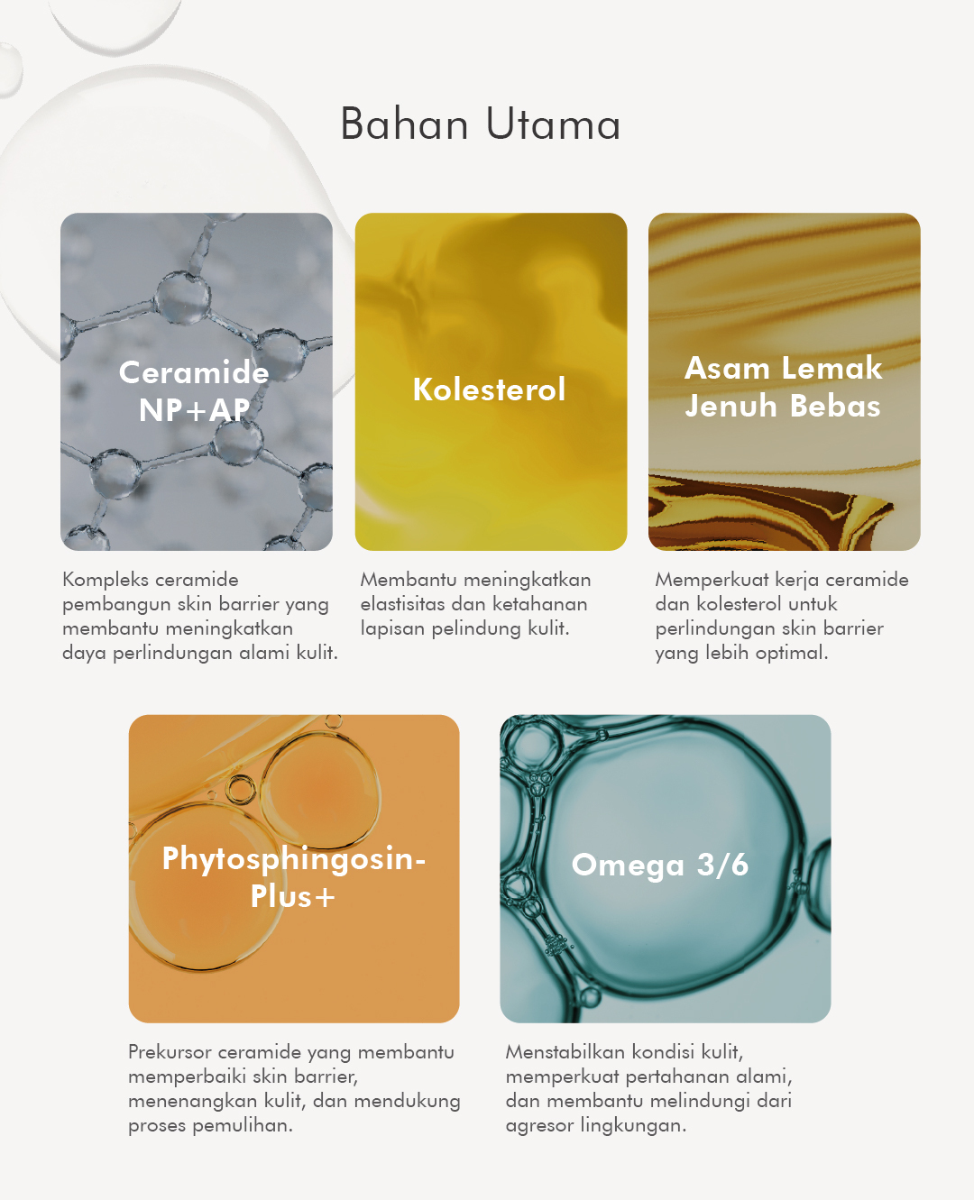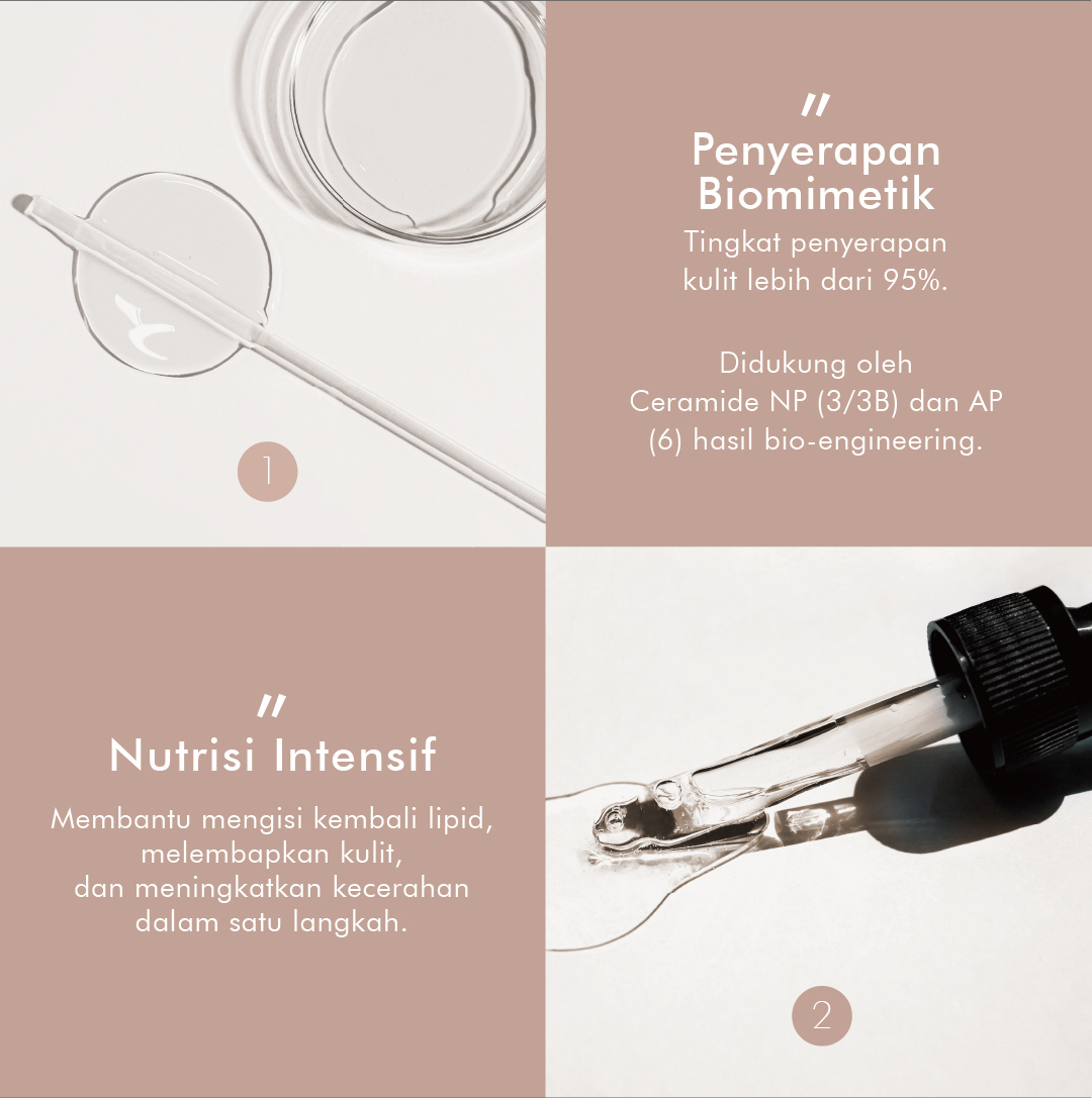 Diperkaya formulasi lipid tanpa air, membantu membangun dan kuatkan lapisan pelindung kulit, serta mengurangi garis halus di wajah.