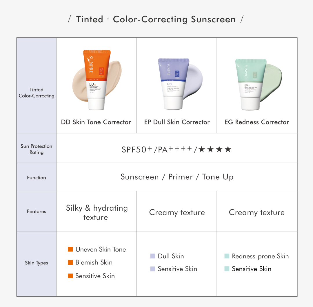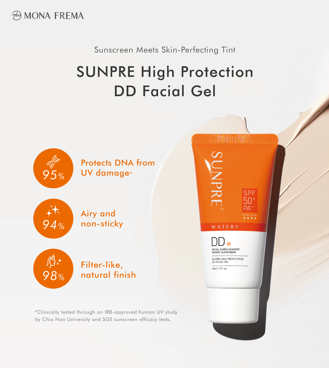 Sheer-tinted sunscreen with SPF 50+/PA++++ adapts to all skin tones. DD formula offers buildable coverage, concealing blemishes for a healthy, dewy look.