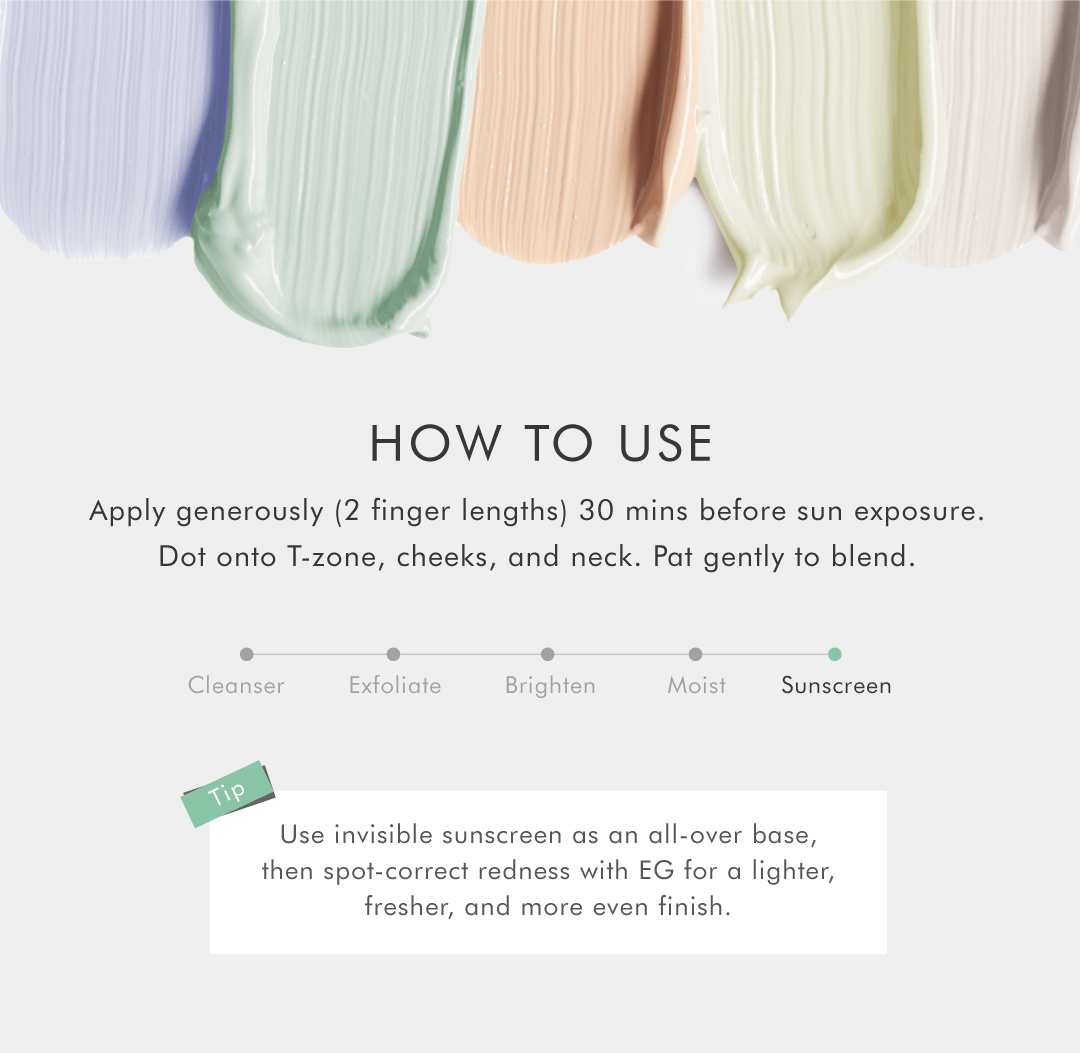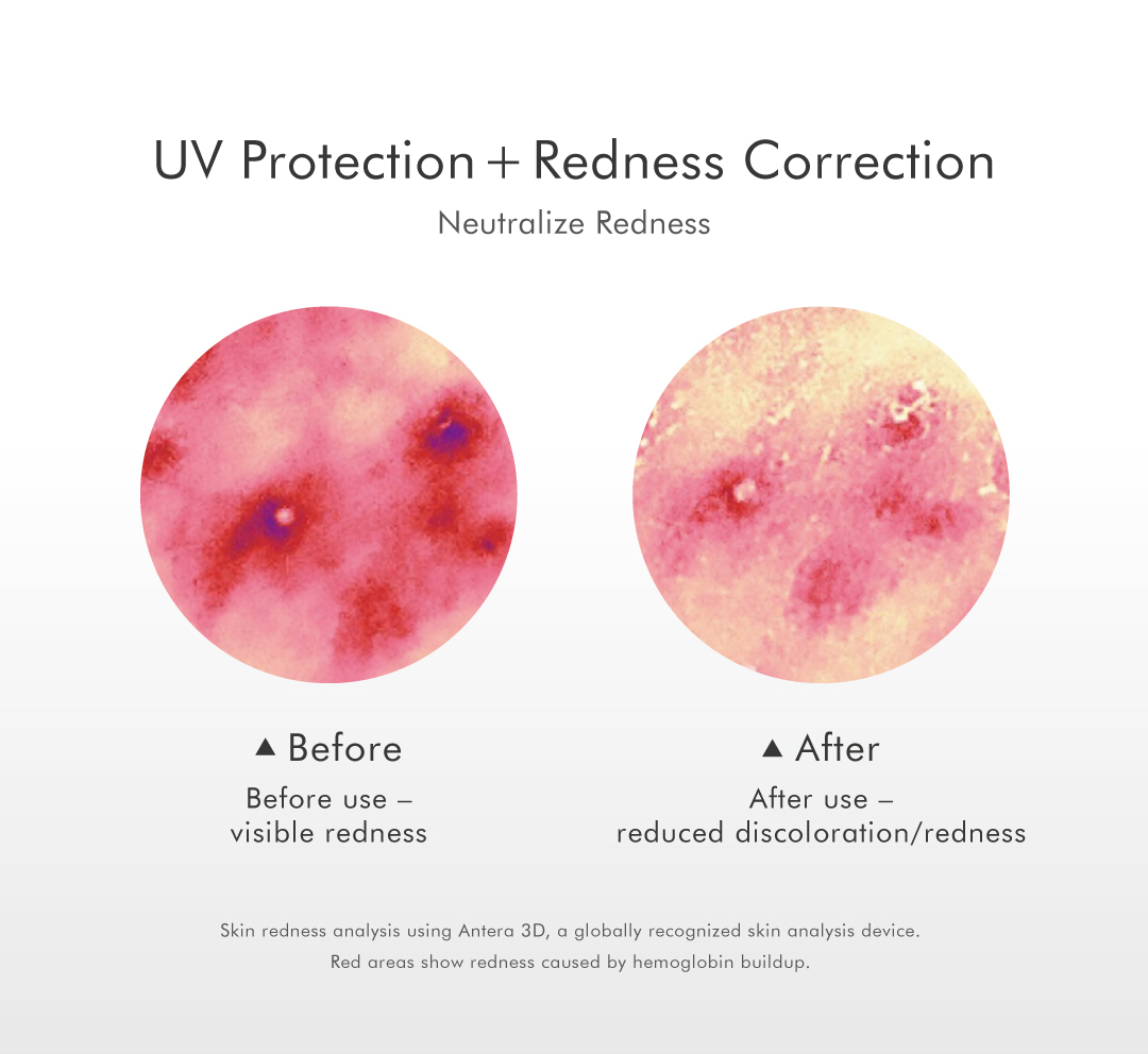 Color corrector sunscreen that is specially designed to reduce redness while providing protection against UV rays.