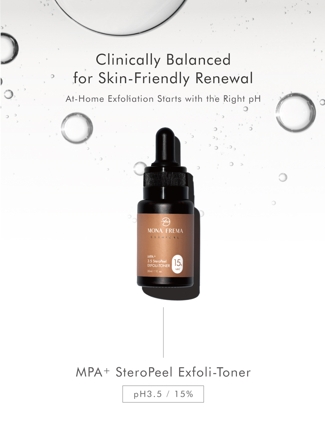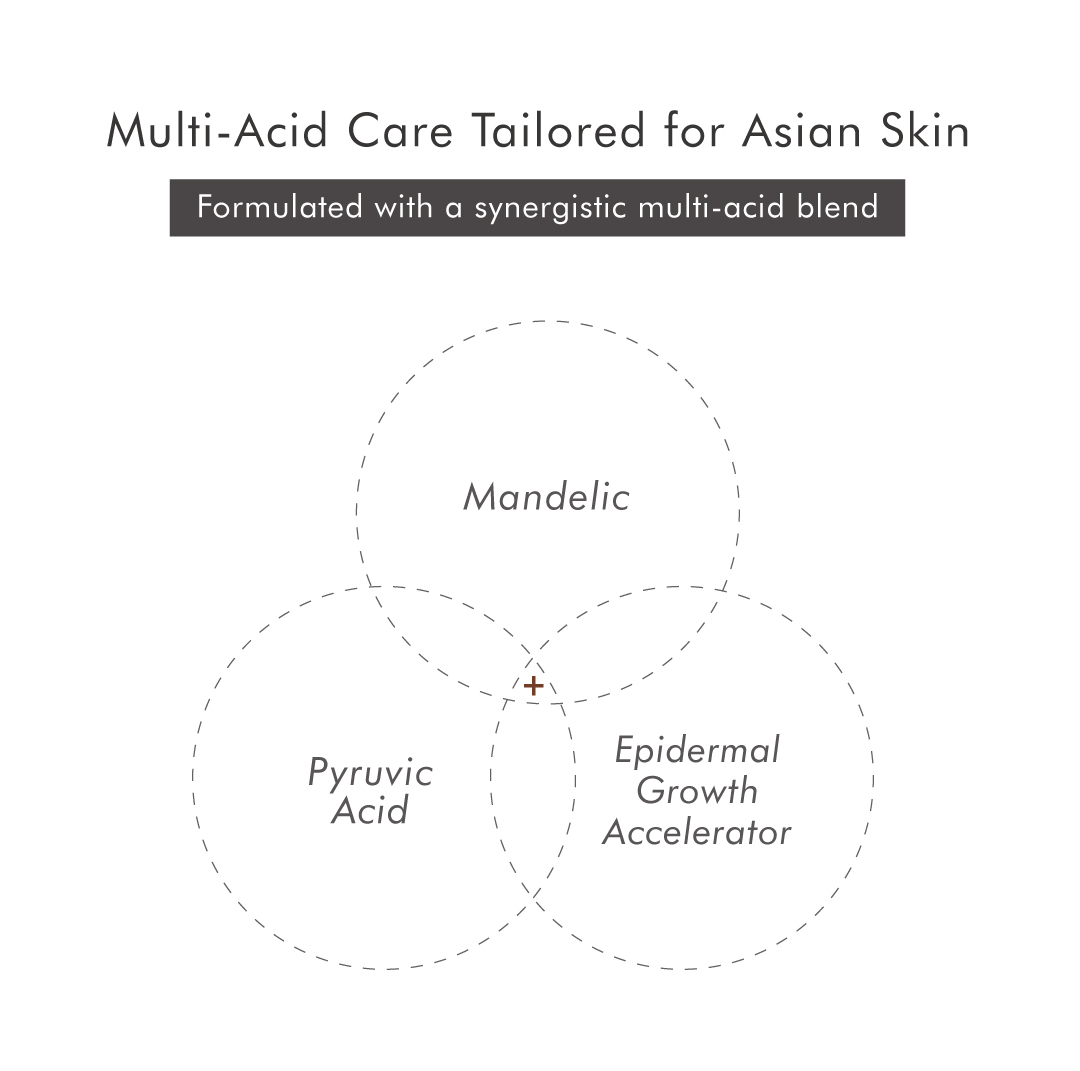 A leave-on exfoliant containing Mandelic Acid, AHA, and advanced peeling ingredients works to reduce imperfections, promoting a tighter, evenly toned skin.