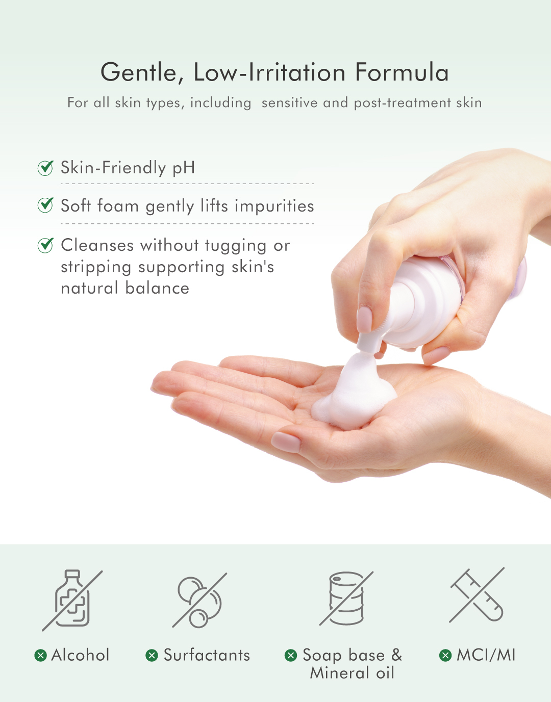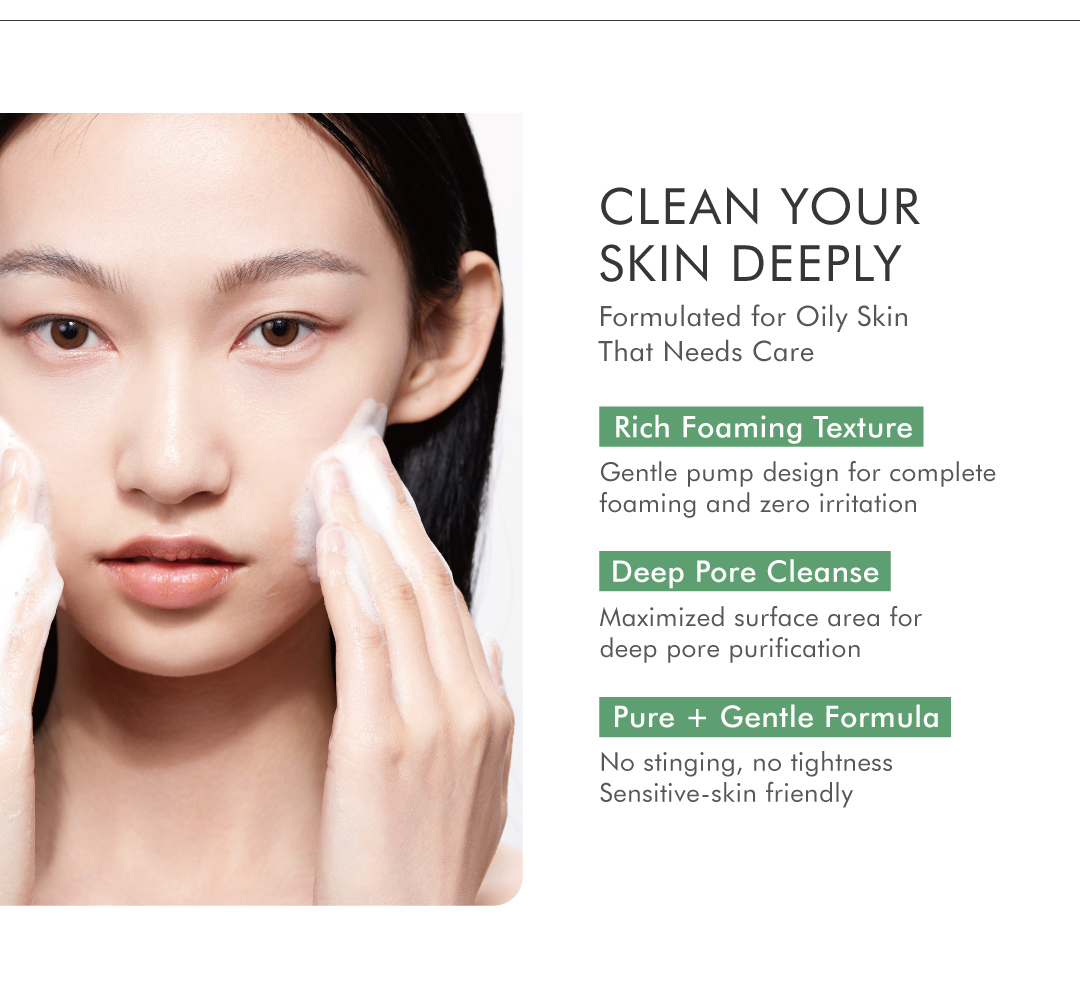 A gentle, foamy-textured cleanser with a plant extract formulation. It helps in deeply cleansing dirt from clogged pores, refreshing the skin without damaging the skin barrier, and controlling excess sebum production.
