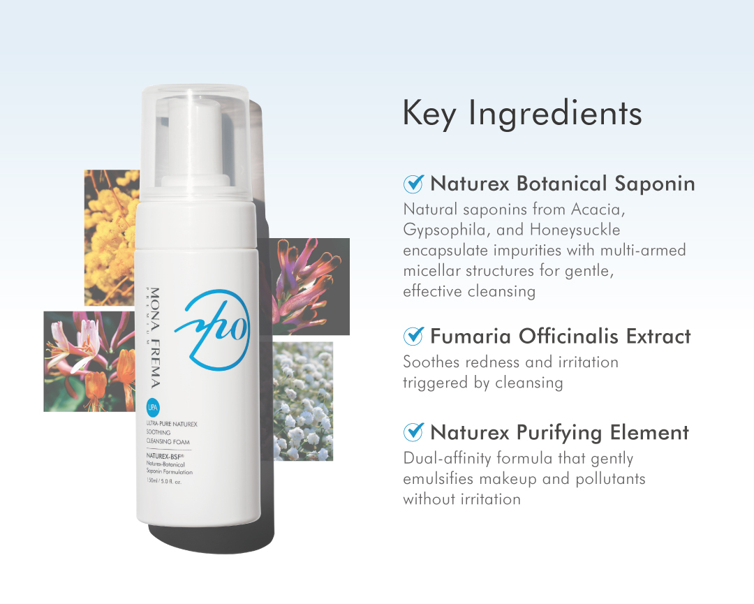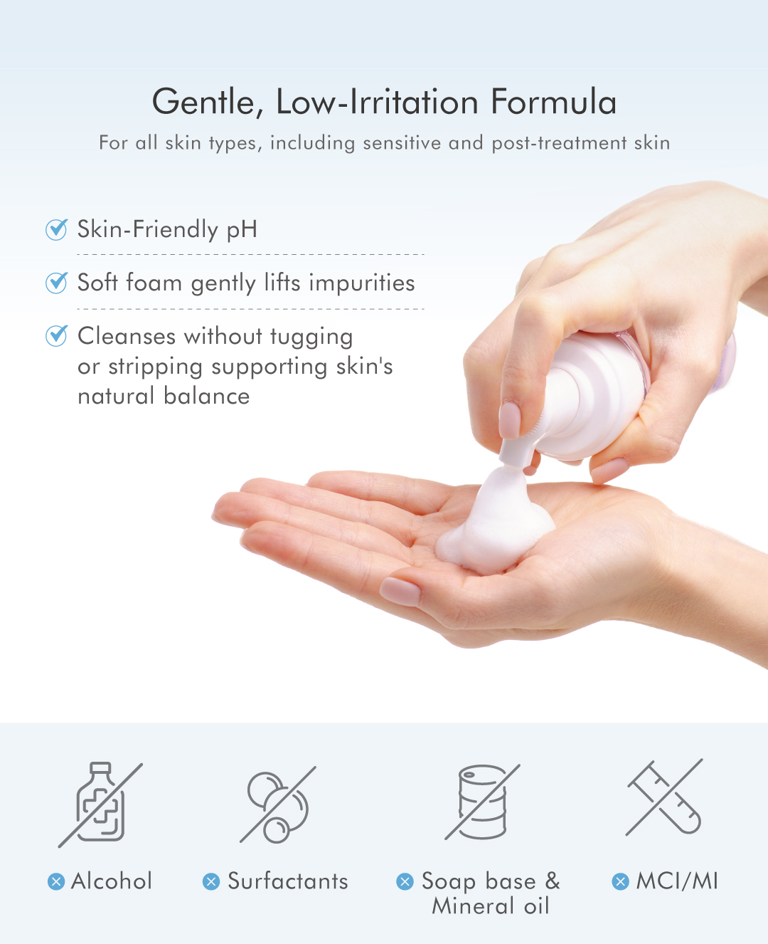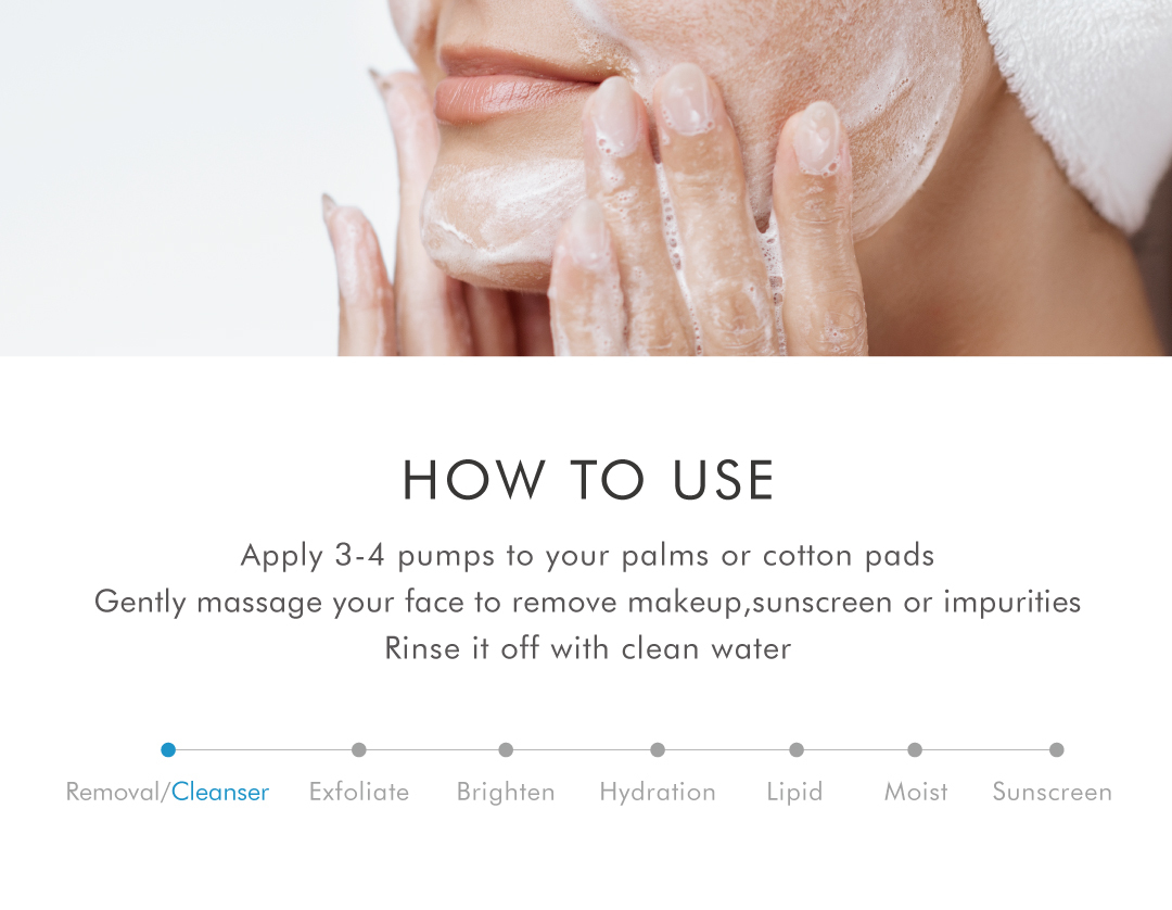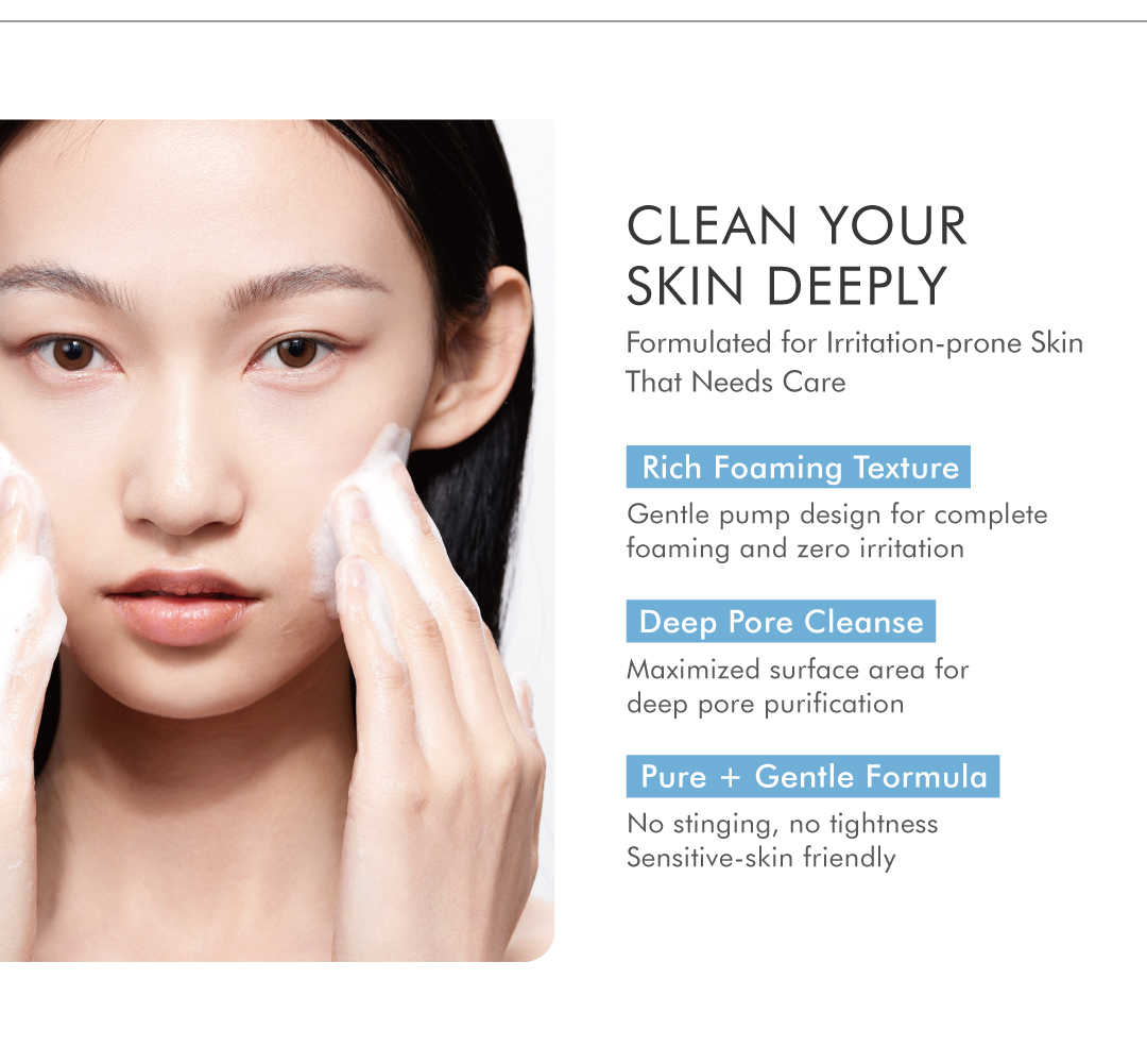 A gentle, foamy-textured cleanser that deeply cleanses impurities without compromising the skin barrier, leaving the skin cleansed and conditioned without uncomfortable tightness.