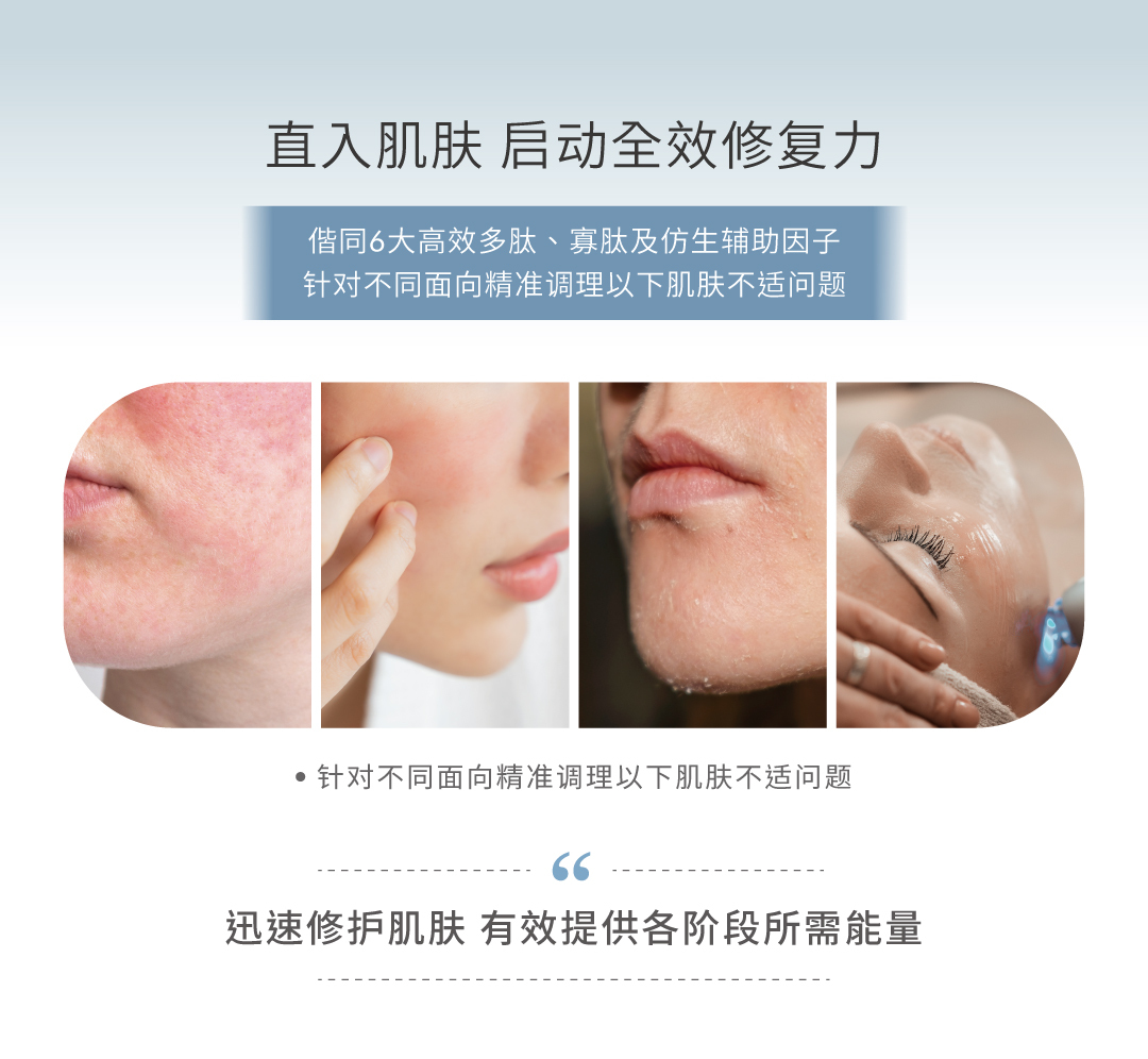 富含的多种胜肽,有助于提升肌肤屏障的保护力及促进肌肤的深层修护力,适合医美术后及各种肌肤使用