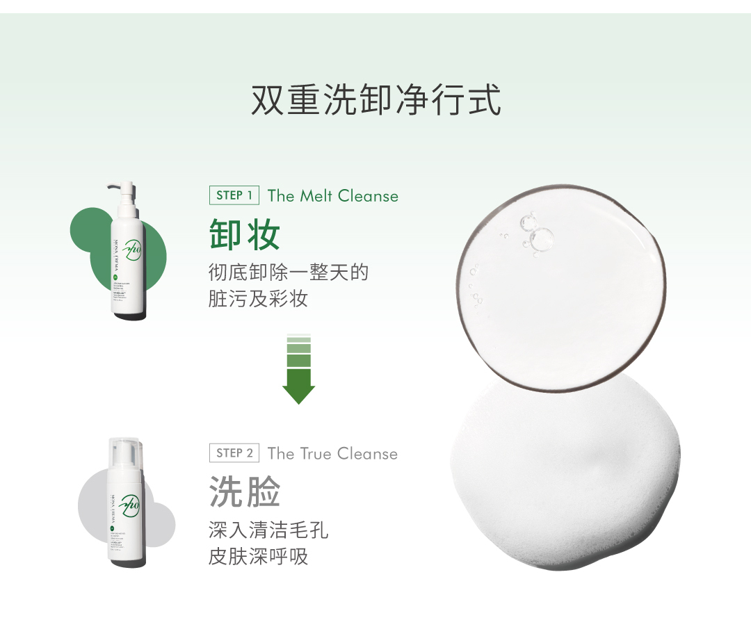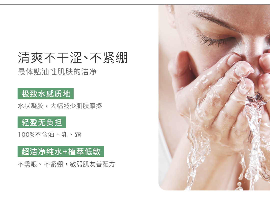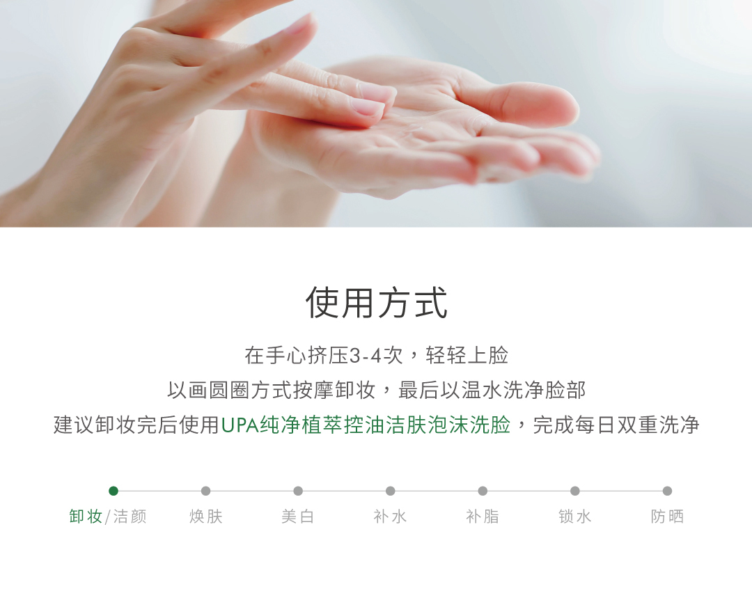纯净温和无油配方,有效地带走彩妆、防晒和油脂脏污,深层清洁不损肌肤天然皮脂膜,同时平衡肌肤的pH值
