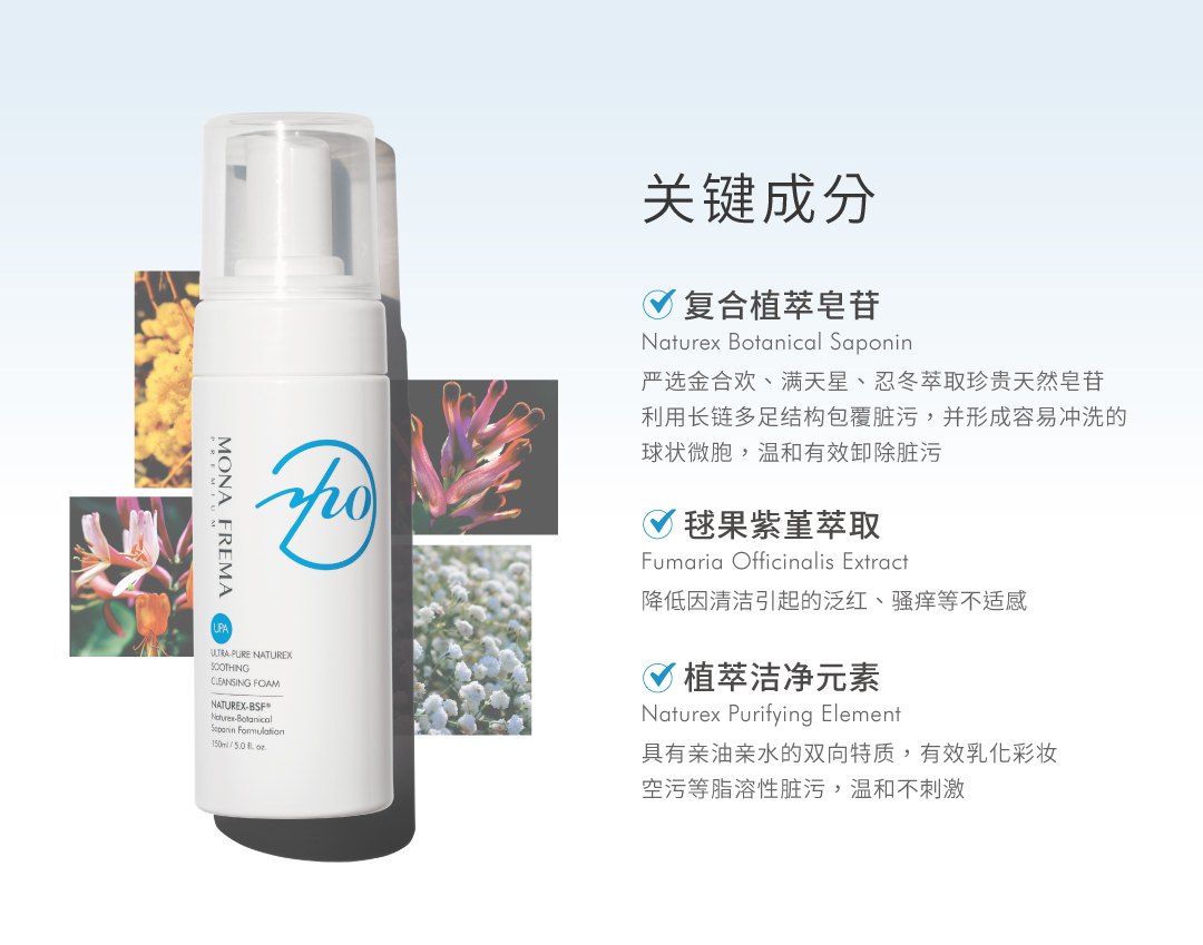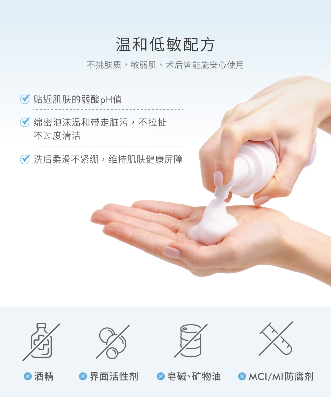 天然ECOCERT认证低敏洁肤泡沫配方,深入毛孔打包脏污,温和不剌激,不仅能深层清洁毛孔污垢,同时维持角质保水度,保护肌肤天然屏障,避免干燥不适,回复肌肤平滑细致度