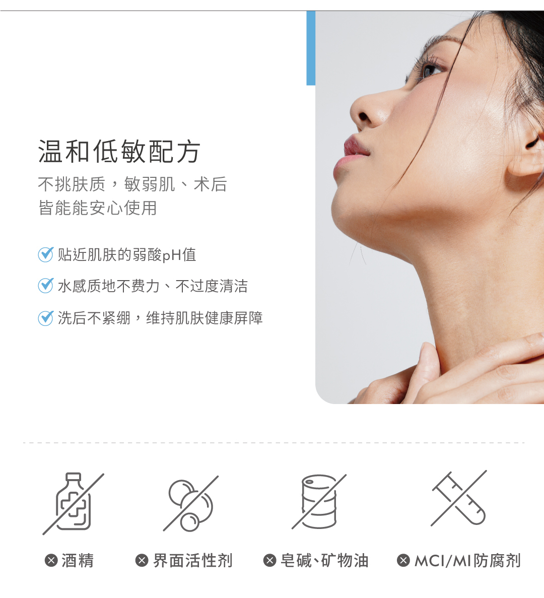 温和低敏的无重力洁净配方,运用负电清洁技术搭配植萃舒缓配方,轻柔包覆脏污,有效地去除彩妆及表面污垢,减少肌肤过度拉扯,洗后不紧绷同时保护皮脂膜,使肌肤更加 柔润触感,维持健康肤况