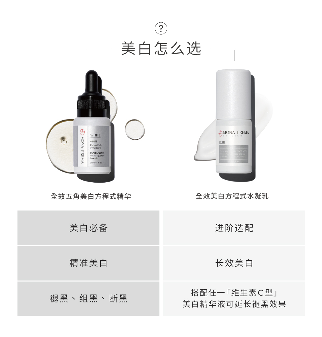建议搭配WHITE全效美白方程式水凝乳使用,加乘美白效果
