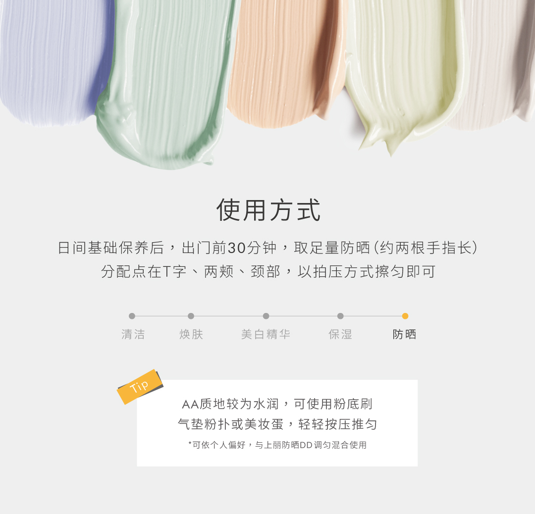 一抹隔离脏空气、强力抵御UVA/UVB紫外线,采敏弱肌适用的低刺激配方,打造健康光泽肌肤,亦适合当妆前乳使用。