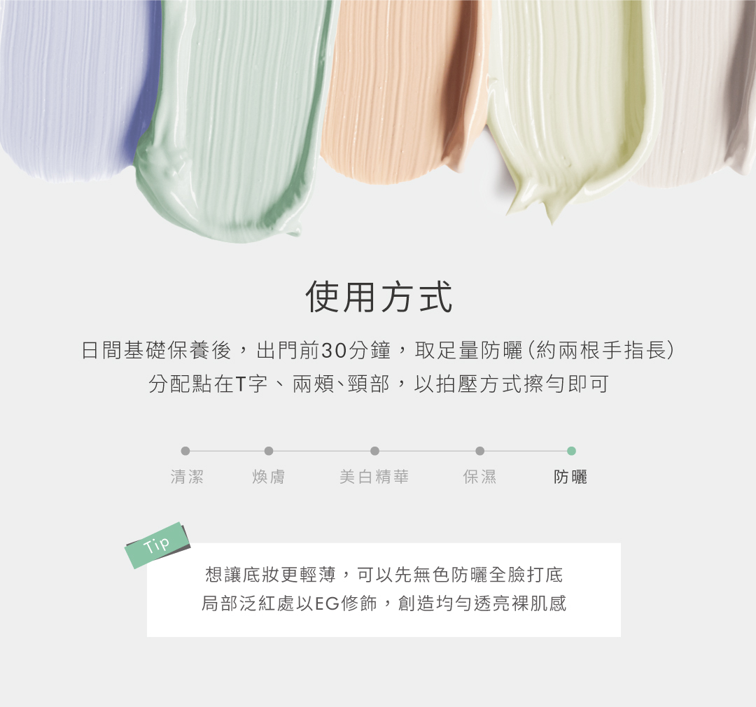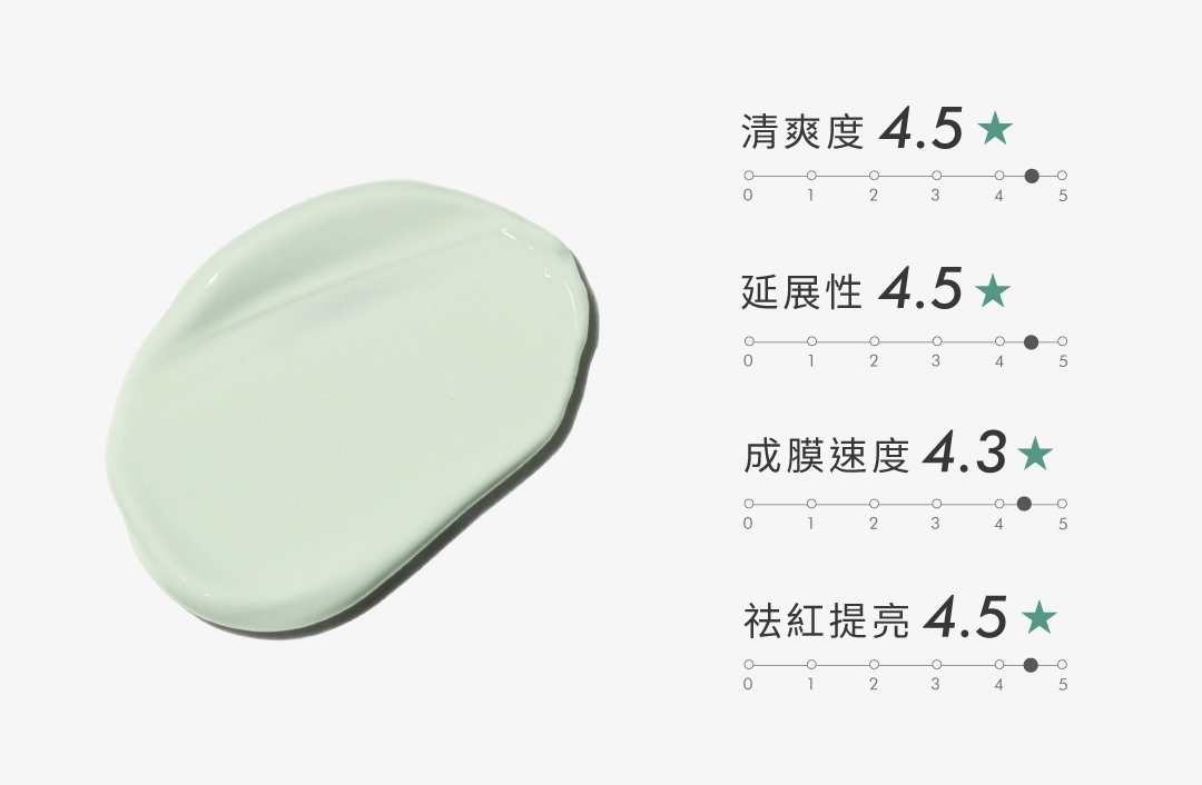以超高紫外線防禦力與修飾泛紅及痘痘膚色為主要訴求的綠色防曬飾底,隱形防護,調整膚色不均,輕鬆打造自然半啞光妝容