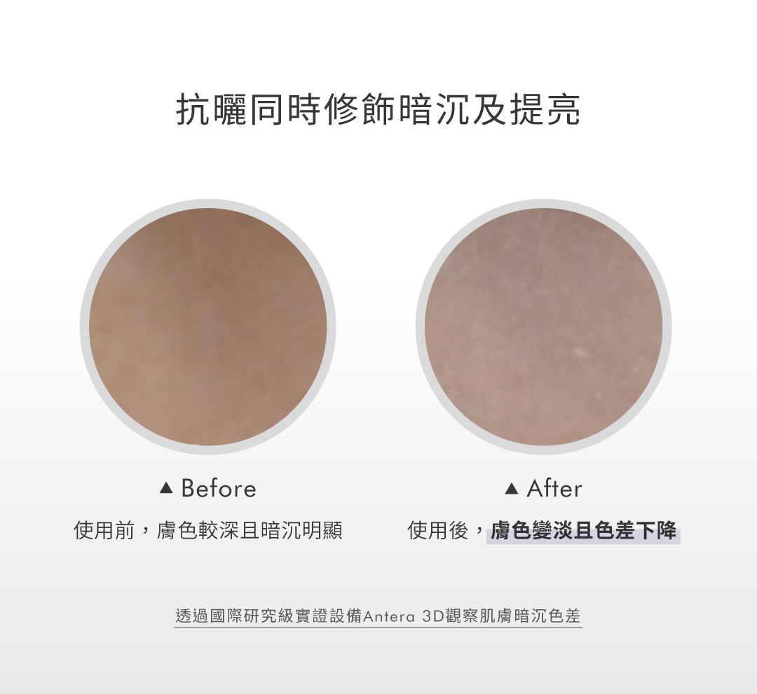 超寬頻UV防禦力,防曬黑同時有效提亮膚色;專為亞洲肌膚研發,輕盈如奶霜質地,柔滑舒適的使用感,即便單擦也能擁有好氣色